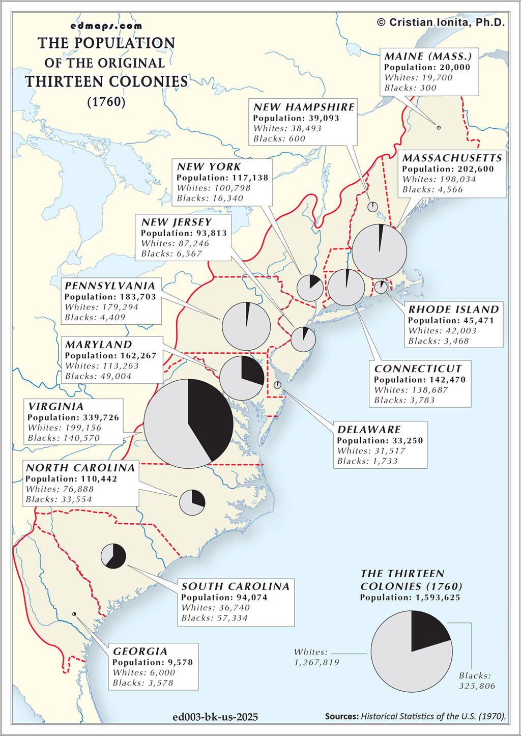 In 1760, the Thirteen Colonies had reached a population of approximately 1.59 million people, representing continued robust growth from the previous decade and positioning the colonies for further territorial expansion on the eve of the French and Indian War's conclusion.